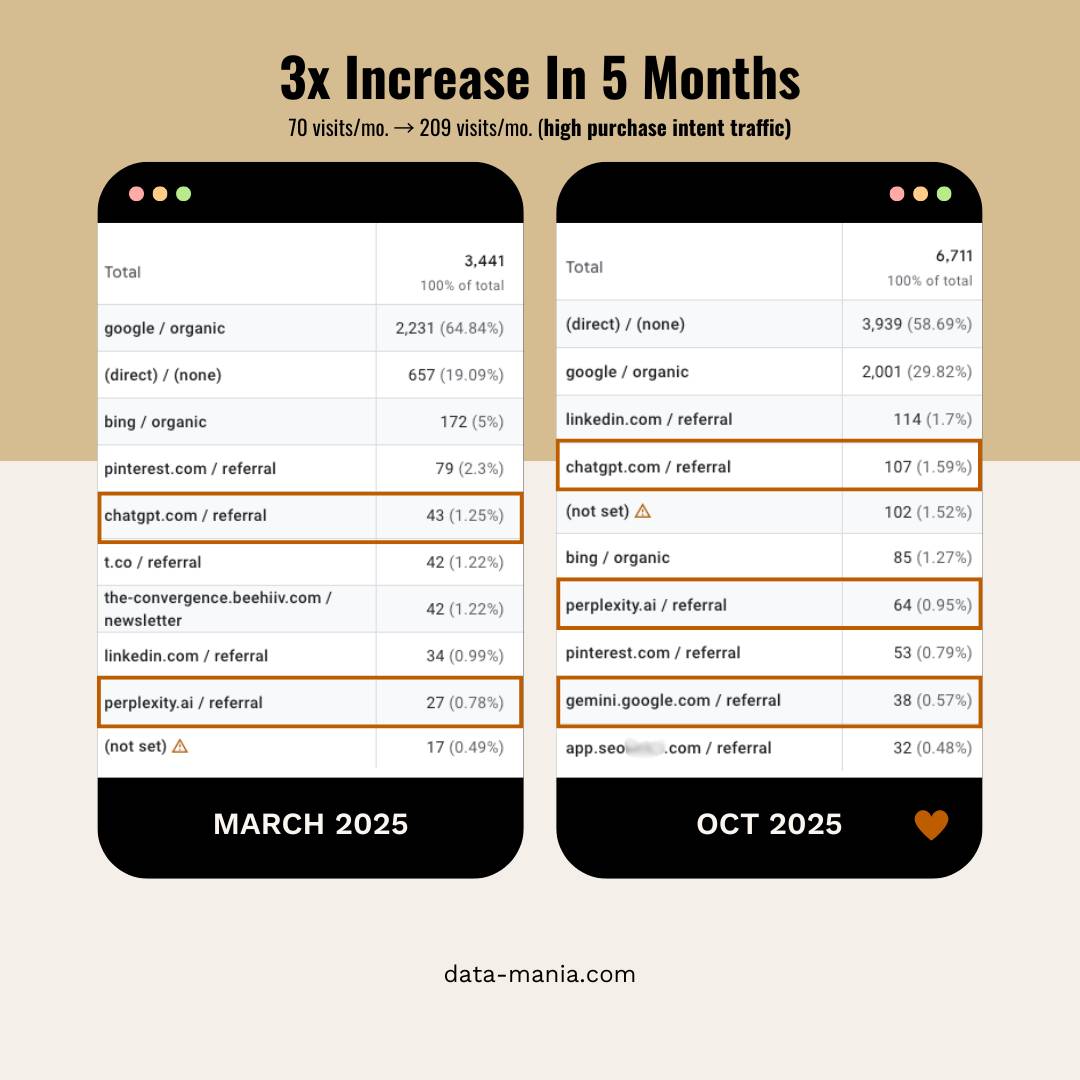 I want to share an incredible story with you Reader... Before I figured out the AI visibility system, I was doing everything "right" according to traditional SEO advice. High-quality blog posts. Backlinks. Keyword optimization. Domain authority building. The whole playbook. (Maybe you can relate to feeling like you're shouting into the void?) Heck back in 2023, I had my team spending 30+ hours a week on content, while watching my traditional Google traffic stay relatively flat. That was less than appealing so I took a break to search for better tactics... But I dismissed it as just another trend. Another thing to add to my already-full plate. Then one dayThen one day, I got on a discovery call with a prospect who said something that stopped me in my tracks: "I did some research on people who were kind of influencing this space, and your name popped up, which is kind of exciting, right?" When I asked where they found me, they said: "It was probably ChatGPT or something." That deal closed at five figures. That's when I started paying attention. Really paying attention. Here's what happened once I reverse-engineered the system and started tracking it properly: Within 90 days:
