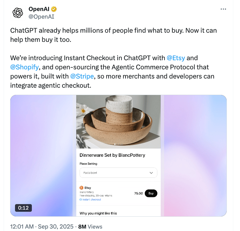 Hi Reader- If you're following what's happening in AI, you probably saw OpenAI's announcement yesterday about Instant Checkout in ChatGPT. On its face, it seems like just another feature for Etsy and Shopify sellers. But here's what caught my attention: This is OpenAI's clearest signal yet that AI search is becoming a primary discovery channel. And most tech companies have no idea if they're even visible in it. Here's what I meanI'm already bringing in $12k monthly just from being recommended by LLMs. Not from paid ads. Not from SEO grinding. From being the answer when someone asks ChatGPT, Claude, or Perplexity for solutions in my space. The numbers tell an interesting story: